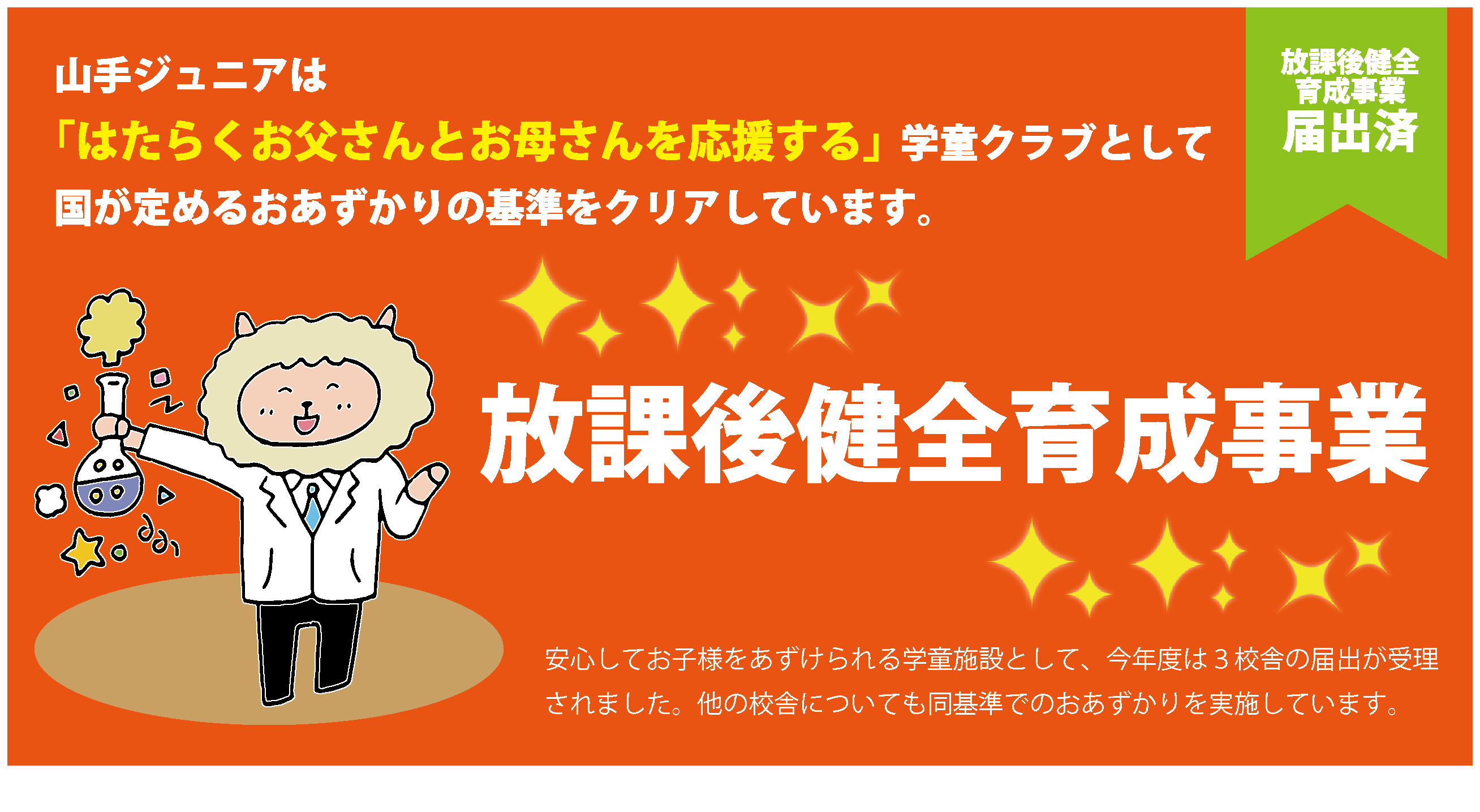 山手ジュニア学童クラブは放課後児童健全育成事業に届出済みです。